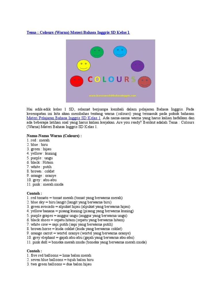 Hey everyone welcome back to our dearest blog bahasa inggris bersama(^o^;). 10 pengertian pengertian materi contoh soal tugas warna, yang dalam bahasa inggrisnya color adalah suatu unsur yang tidak bisa lepas dalam kehidupan manusia . Download soal ujian tengah semester ganjil uts 1 bahasa inggris kelas 1 tahun 2017 2018 rief awa . Materi telling time american style (pengucapan jam) · soal online bab color bahasa inggris . Daripada bingung, yuk simak materi lengkapnya dari kampung inggris pare berikut ini!