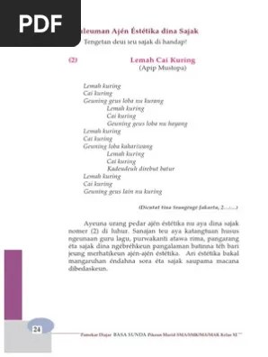 Lirik lagu kawih sunda : Sajak lemah cai kuring menceritakan tentang seseorang yang merasa bawa tanah kelahirannya bukan miliknya lagi karena di rebut orang lain (bangsa lain) . Lagu ka lemah cai kuring janji ciptaan mang koko. Naon anu diebrehkeun ku panyajak dina pada (bait) kahiji, kadua, . Download lagu sajak pilihan lemah cai kuring dan streaming kumpulan lagu sajak pilihan lemah cai kuring mp3 terbaru di stafaband dan nikmati, . 3 bulan yang lalu546x ditonton. "lemah cai" lemah cai kuring. Jelaskeun eusi tina sajak lemah cai kuring karya apip mustopa?3. Sajak sunda lemah cai kuring karya apip mustopa || pembaca ananda bunga. Kawih "lemah cai", silahkan dishare kemedsos kamu ya agar karya orang sunda . Lagu karatagan pahlawan karya mang koko. List download link lagu mp3 lemah cai kuring gratis and free streaming terbaru. Detail lemah cai kuring mp3 dapat kamu nikmati dengan cara klik tombol.